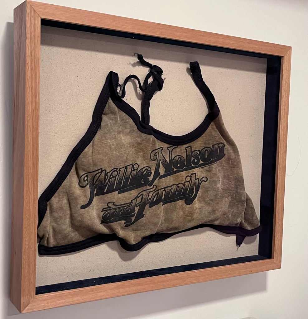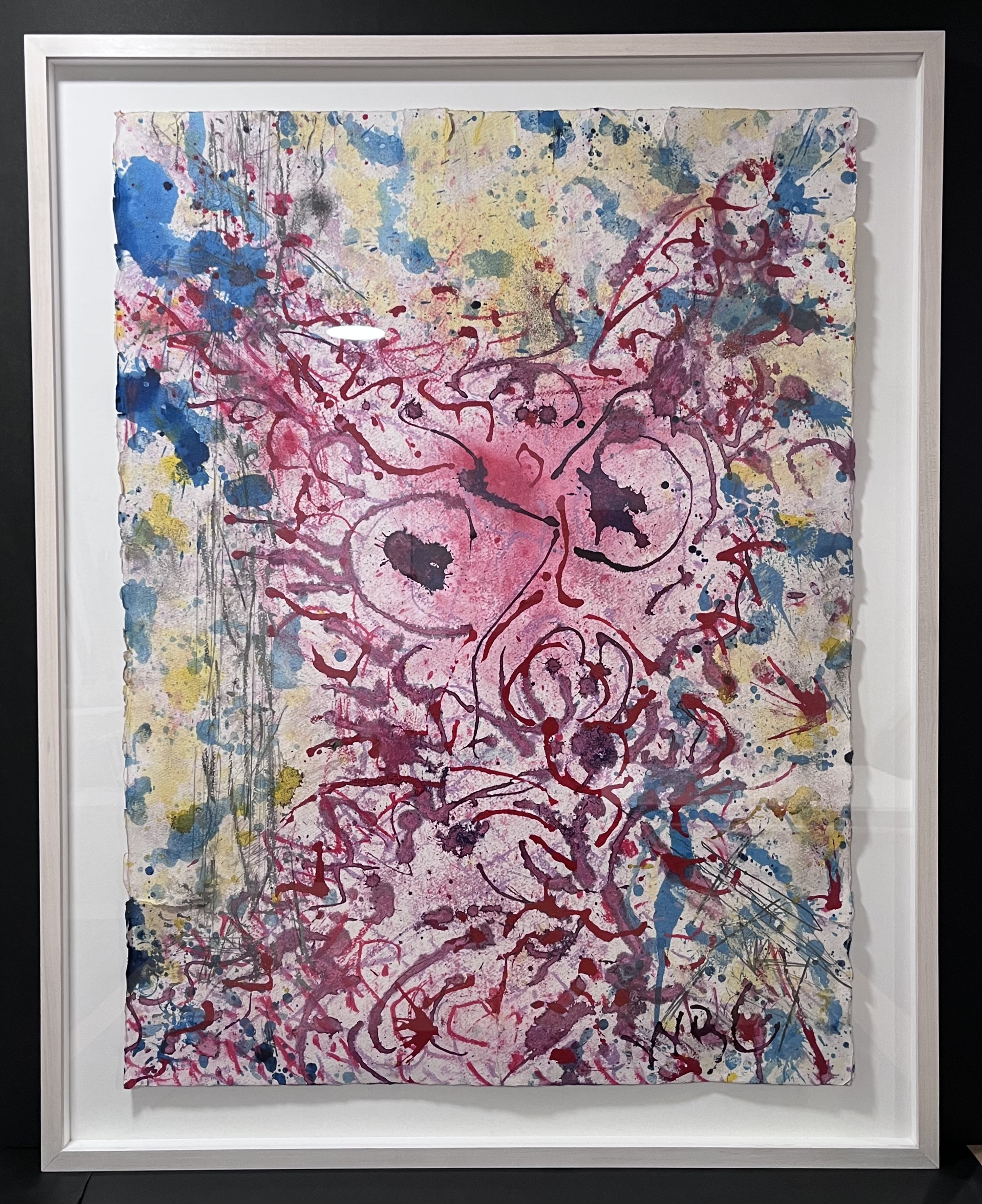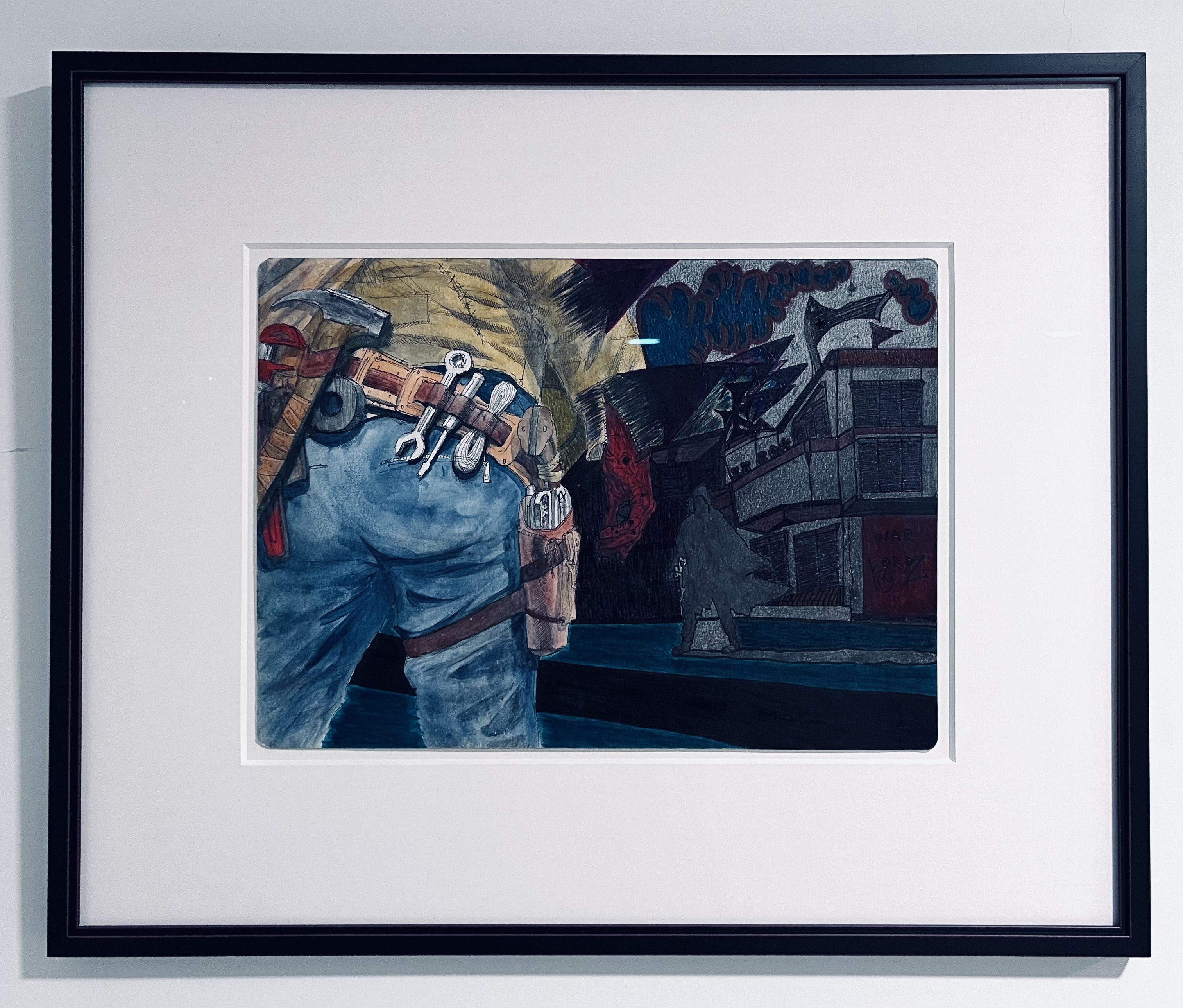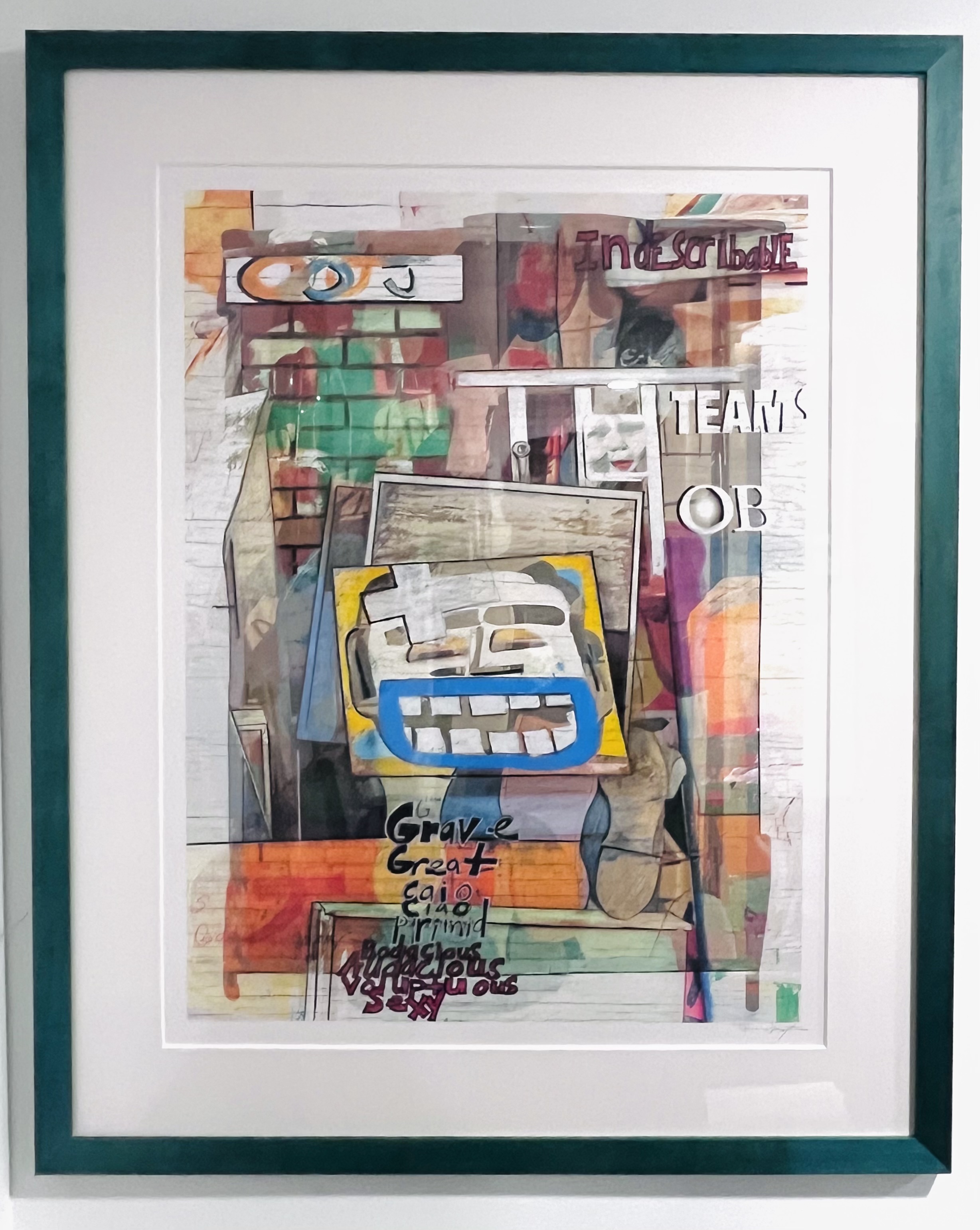 in-house stained maple cap frame this deep blue/green accentuates the dynamic color of the art